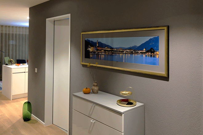 Berührungen hinterlassen helle Spuren. Für Flächen mit Durchgangsverkehr ggf. die unempfindliche Satinée Farbe einsetzen.