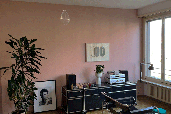 Berührungen hinterlassen helle Spuren. Für Flächen mit Durchgangsverkehr ggf. die unempfindliche Satinée Farbe einsetzen.